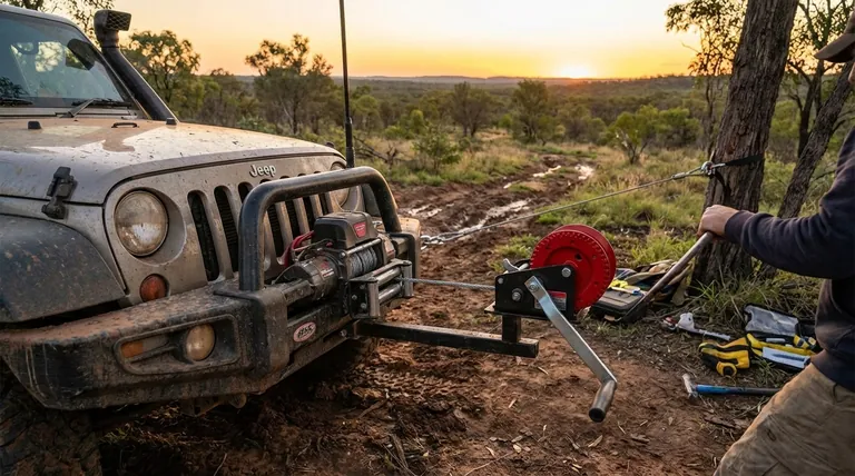 C'est une application classique. Un treuil manuel est un outil inestimable pour tirer un VTT (véhicule tout-terrain) ou un véhicule utilitaire coincé dans la boue, le sable ou un fossé, en particulier dans les zones reculées où un véhicule de soutien n'est pas présent.