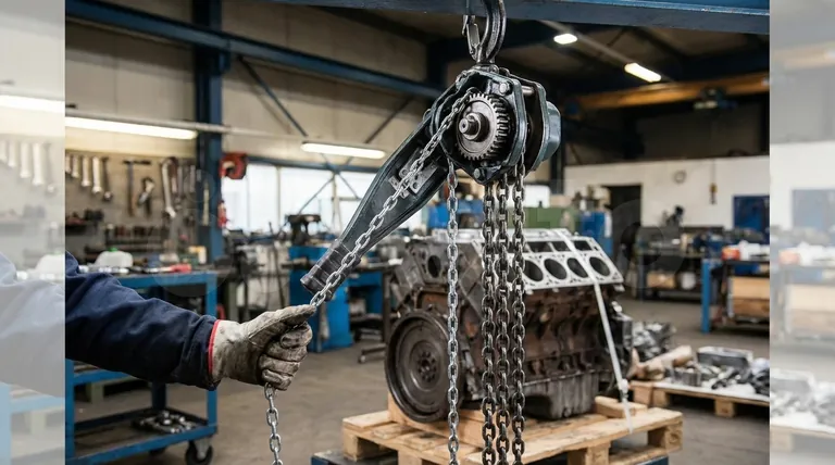 - Si votre objectif principal est la précision et le contrôle : Un palan à chaîne manuelle est excellent pour des tâches telles que le positionnement d'un moteur ou l'alignement précis de machines lourdes où un mouvement lent et régulier est un avantage.